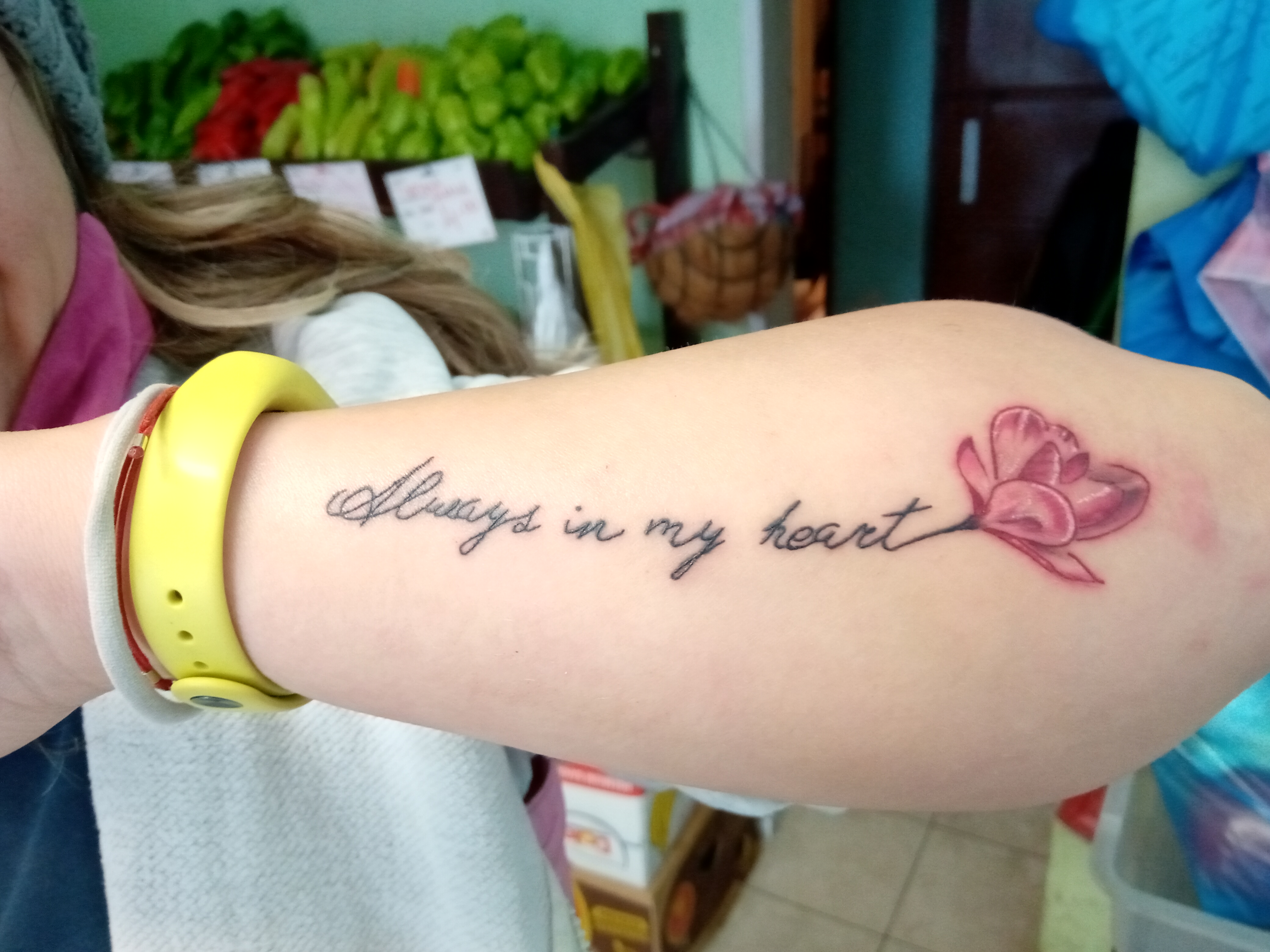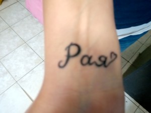 Татуси на вътрешната страна на китката на едната ръка пише